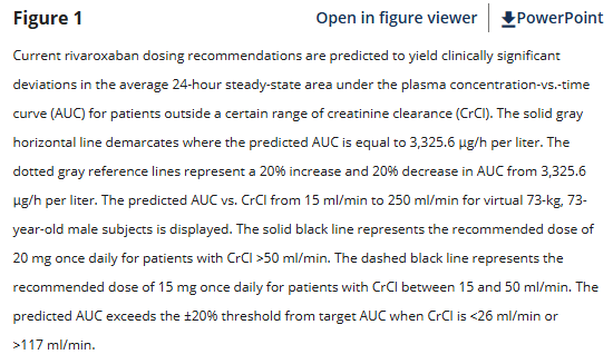 More precise rivaroxaban dosing recommendations are provided for a wider patient range of creatinine clearance than was studied in the phase III trial, but which exist in real-world patients.